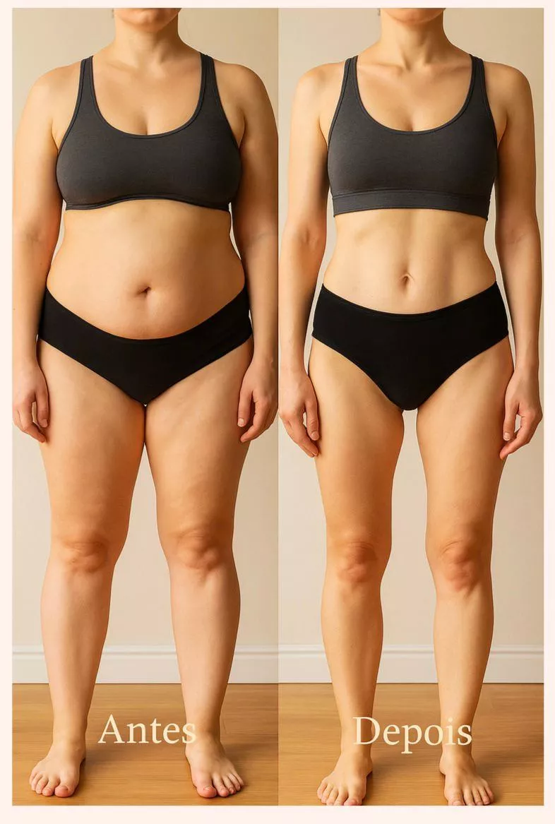 Muitas mulheres relatam menos inchaço e mais leveza entre 7 e 10 dias. A barriga estufada começa a baixar, a roupa marca menos e a pessoa sente mais controle à noite. O ritmo depois é pessoal e depende da sua constância.
